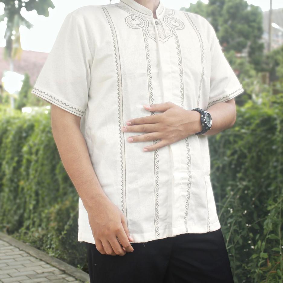 Bordir Tempel Untuk Baju Koko - Rekomendasi model baju koko pria modern terbaik yang pertama adalah kemeja koko aljaiz dari rabbani dengan bagian lengan yang pendek.